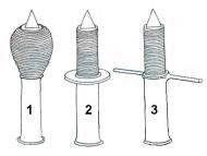 ![]() 1 Puya de limoncillo. Se usó desde mediados del siglo XVIII a 1917. 2 Puya con arandela en la base del encordelado. Se usó desde 1917 a 1962. 3 Puya con cruceta en la base del encordelado. Se usó desde 1962 hasta nuestros días. |