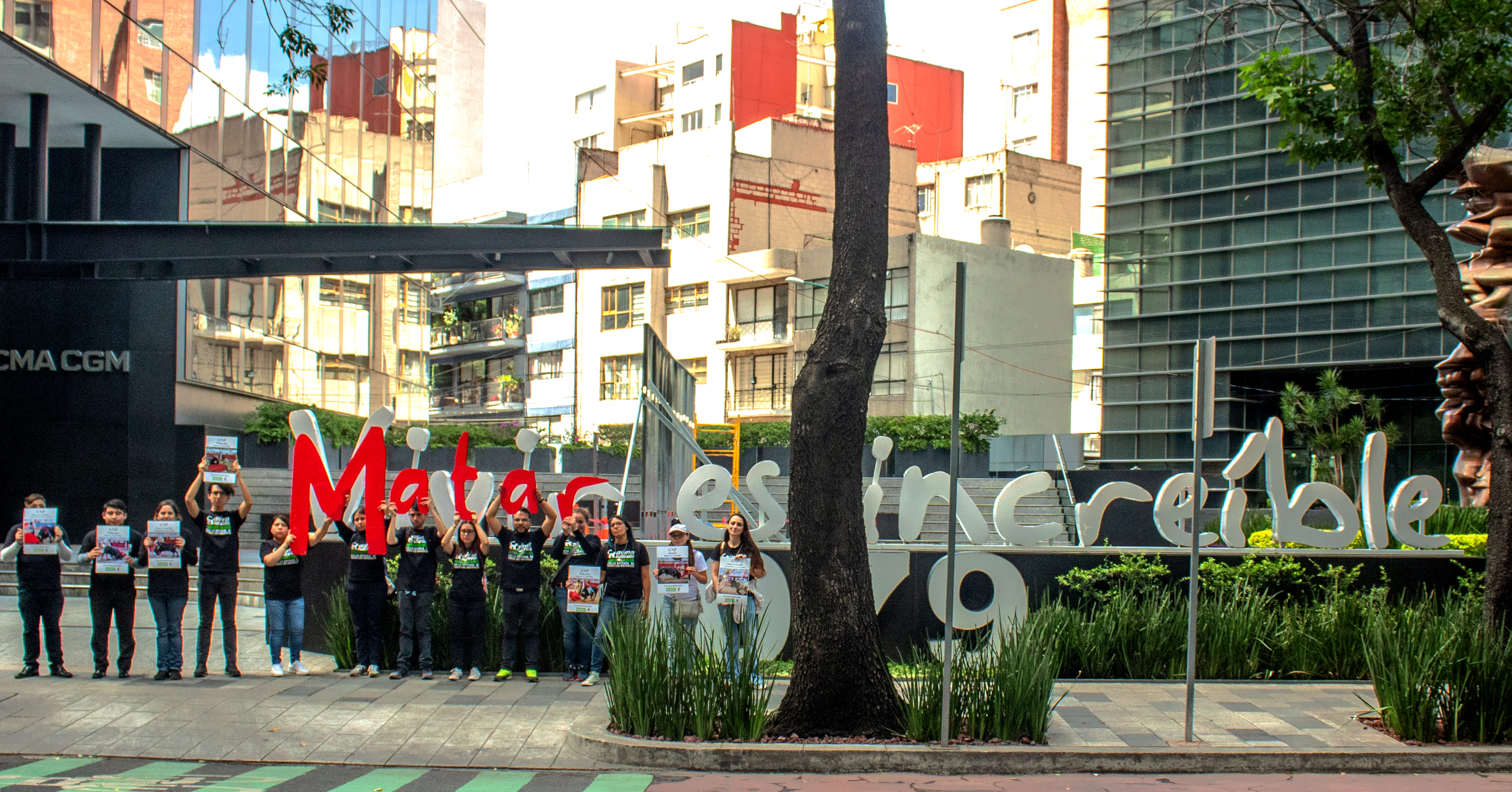Activistas de AnimaNaturalis y CAS International exigen frente a las oficinas de la aseguradora GNP que deje de patrocinar las corridas de toros en México y España. Las organizaciones además lanzan una carta de protesta dirigida a la familia Baillères dueña de la empresa GNP para que deje de promover la violencia hacia los animales.