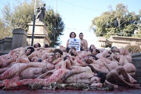 Esta fría mañana de enero, el corazón de Barcelona se detuvo ante una imagen desgarradora: cincuenta personas desnudas, inmóviles y cubiertas de sangre falsa, yacían en el suelo de Plaça Catalunya. La acción, organizada por AnimaNaturalis, simbolizó el sufrimiento de los animales que mueren para confeccionar un solo abrigo de pieles.