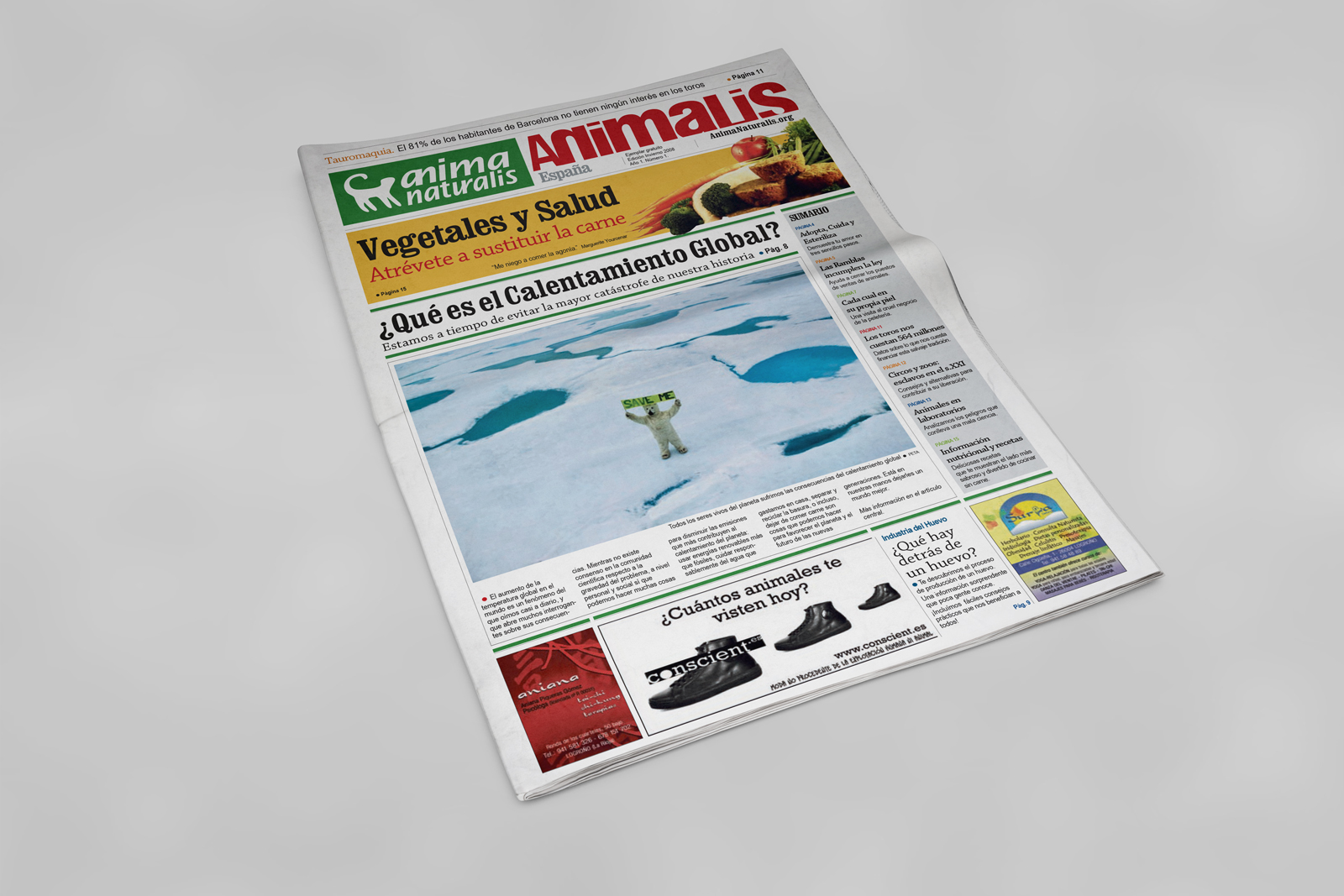 Número 1, año 1 de Animalis, el nuevo periódico trimestral de AnimaNaturalis, compuesto por 16 páginas a todo color. Se editaron 10.000 copias de este primer número.