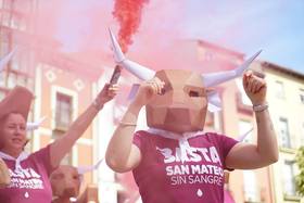 El discurso que acompañó la performance un año más pedía a la ciudad de Logroño que no se vertiera más sangre en nombre de un santo.