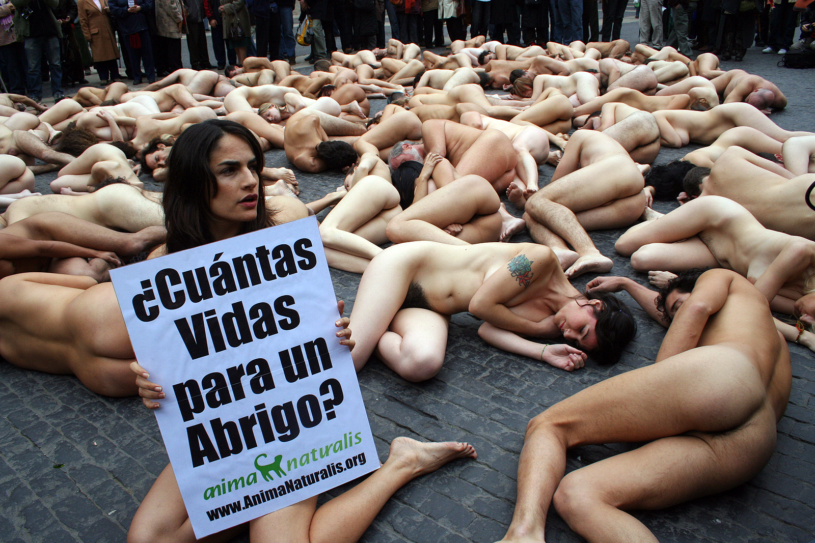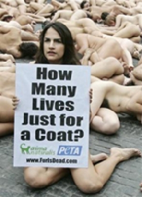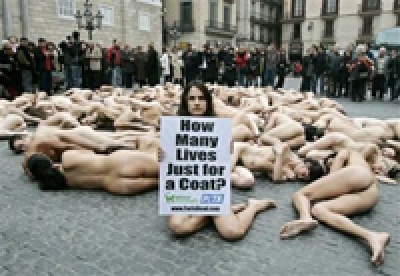 El acto, organizado por la asociación People for the Ethical Treatment of Animals y por la organización hispanoamericana para los derechos de los animales y promoción del vegetarianismo AnimaNaturalis Internacional, pretendía hacer reflexionar sobre el hecho de que las pieles provienen de animales "torturados y despellejados". - Defensores de los animales se manifiestan desnudos contra la compra de pieles