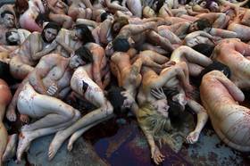 El acto consistirá en representar con nuestros cuerpos desnudos y cubiertos de sangre las vidas de los millones de animales que se cobra la industria peletera.