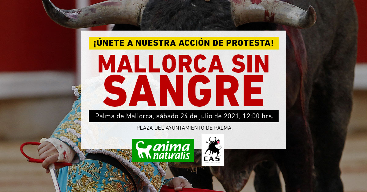 Los toros vuelven a las Islas Baleares, y no nos quedaremos de brazos cruzados. Por ello te invitamos a participar en la acción antitaurina que AnimaNaturalis y CAS preparamos conjuntamente el sábado 24 de julio 2021. La acción comenzará puntual a las 12:00h (quedaremos a las 11:15 para dar las instrucciones y entregar el material).