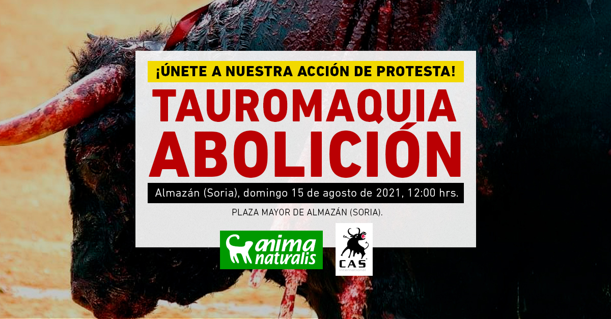 Los toros vuelven a Almazán, Soria y no nos quedaremos de brazos cruzados. Por ello te invitamos a participar en la acción antitaurina que AnimaNaturalis y CAS preparamos conjuntamente el domingo 15 de agosto 2021. La acción comenzará puntual a las 12:00h (quedaremos a las 11:15 para dar las instrucciones y entregar el material).
