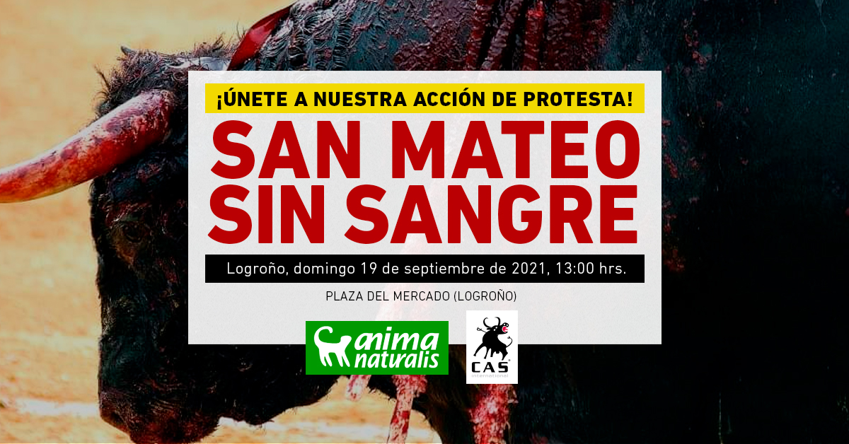 Los toros vuelven a Logroño, y no nos quedaremos de brazos cruzados. Por ello te invitamos a participar en la acción antitaurina que AnimaNaturalis y CAS preparamos conjuntamente el domingo 19 de septiembre 2021. La acción comenzará puntual a las 13:00h (quedaremos a las 12:30 para dar las instrucciones y entregar el material).