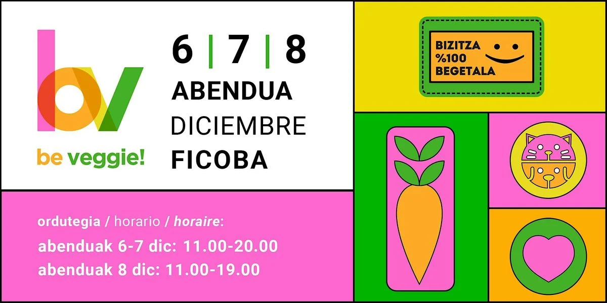 El recinto ferial Ficoba de Irun volverá a acoger entre el 6 y el 8 de diciembre el festival Be Veggie, que contará con la participación de sesenta empresas expositoras. Igual que en ediciones anteriores, la entrada es gratuita, pero requiere registro previo. Este año, el festival ofrecerá stands con las últimas propuestas en productos y servicios veganos, moda sostenible, salud y medio ambiente. Además, se organizarán conferencias sobre alimentación, talleres educativos y lúdicos para toda la familia, 'showcookings', sesiones de yoga, degustaciones gastronómicas y conciertos.