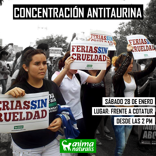 Activistas de la organización AnimaNaturalis desplegarán pancartas y carteles contra las corridas de toros durante los conciertos y reclutarán voluntarios para el operativo "Rescate y Mantenimiento del Nuevo Circo Cultural".