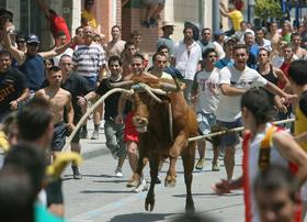 AnimaNaturalis estuvo presente en las fiestas de Sant Carles de la Rápita, durante el primer correbou de la mañana: un toro ensogado. Consiste en dirigir a un toro tirado por cuerdas por las calles del pueblo. Cientos de personas persiguen y acosan al toro sin descanso alguno, durante 50 minutos. Muchos participantes están ebrios por la celebración del botellón de la noche anterior, y acuden a este tipo de actividades con toros sin haber dormido.