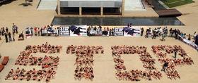 Cientos de activistas semidesnudos se dieron cita el sábado 4 de febrero en el Parque de los Deseos para participar de la mayor acción contra la tauromaquia que se haya registrado en España y América Latina, “Ponte en la Piel del Toro”. Juntos, formaron la palabra STOP para llamar la atención del mundo entero y así denunciar el cruel trato al cual son sometidos miles de toros en espectáculos taurinos que aún avala la ley en tan solo 8 países.