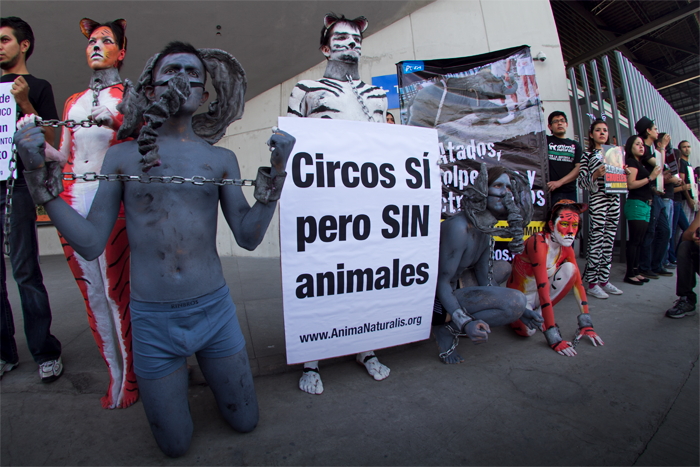 AnimaNaturalis llevó a cabo una protesta contra el Ringling Brothers Barnum & Bailey, frente a la "Arena Ciudad de México", sitio donde este circo se ha instalado para ofrecer funciones en el Distrito Federal, del 23 de Mayo al 3 de Junio.
