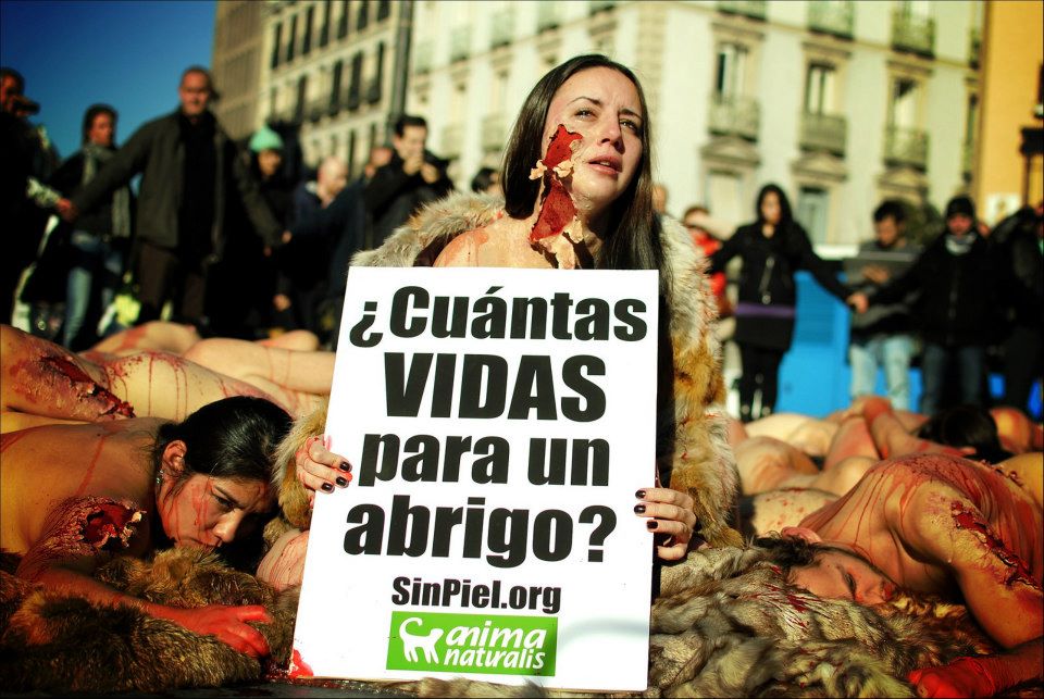 Por octavo año consecutivo, AnimaNaturalis organiza la más importante acción contra el uso de pieles e industria peletera en España. Esta versión reunió a casi medio centenar de activistas completamente desnudos, bajo el gélido frío de Madrid. Con sus cuerpos trataron de simbolizar la misma cantidad de animales que se requieren para confeccionar un sólo abrigo de pieles, mientras se escuchaba el lema: "¿Cuántas vidas para un abrigo?".