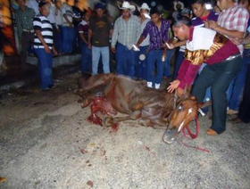 Yucatán, México - Cada fin de semana, en varias ciudades del Estado de Yucatán, se realiza un torneo conocido como “Torneo de lazo” en el que se usan caballos y toros de media casta con el objetivo de lazar al toro. En este “espectáculo” los toros atacan directamente a los caballos provocándoles heridas muy graves que en ocasiones dejan expuestos sus intestinos.