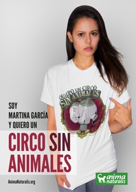 Desde hoy, Martina García, se convierte también en la imagen central de la campaña de AnimaNaturalis ''Yo Quiero Un Circo Sin Animales'' para denunciar el maltrato y la crueldad que se oculta detrás de la carpa de colores. “Me resulta insoportable pensar en el maltrato y la muerte de un animal” declaró.