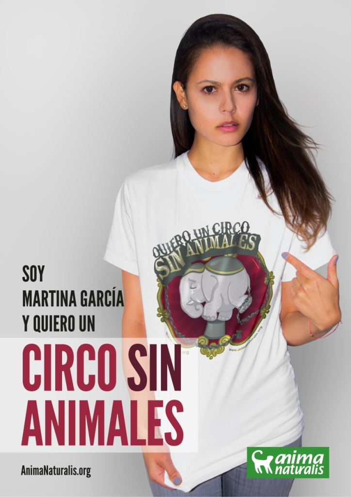 La reconocida actriz colombiana Martina García, protagonista de la polémica película Operación E, se suma a la campaña internacional de AnimaNaturalis en contra del uso de los animales en los circos, la cual ha sido apoyada por numerosos artistas de España, Chile y Venezuela.