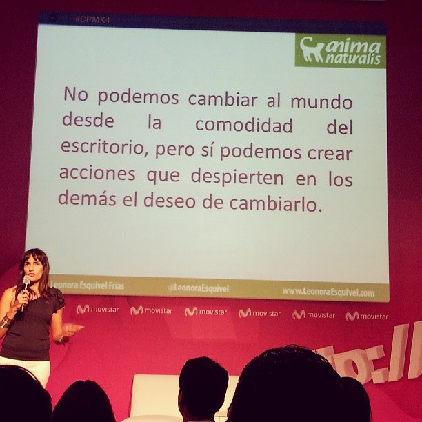 La conferencia, titulada Salvar Animales me hace click, trató sobre el poder de convocatoria y difusión que tienen las herramientas tecnológicas, sin duda fundamental para llamar la atención de un gran número de gente en el menor tiempo posible. Sin embargo, cabe la posibilidad de caer en un activismo superficial, donde el usuario crea que con dar un retwitt, poner "me gusta", o firmar una petición en línea, está salvando el mundo.