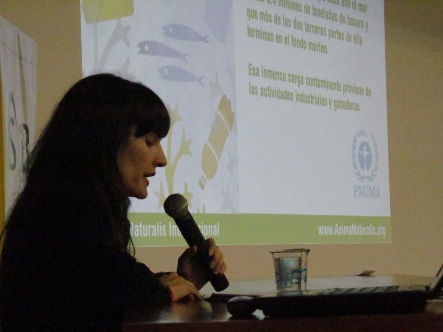 Su participación, a través de una conferencia magistral, versó sobre los efectos de la ganadería industrial en países como México y Brasil. En otra sesión habló del activismo en la era de las redes sociales y de cómo éstas pueden ser un gran aliado para la lucha por los derechos de los animales, así como un espacio donde se puede caer en la ilusión de estar haciendo mucho sin ser realmente efectivos.