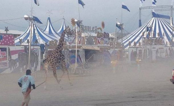 El representante del circo aceptó que, debido a un descuido de uno de los cuidadores, la jirafa logró escapar y salir de las instalaciones, corriendo por la avenida Juan Montemayor de la colonia Hacienda Los Morales, poniendo en peligro su vida y la de los automovilistas que circulaban en ese momento por el lugar. En este video se puede apreciar cómo por lo menos tres autos tuvieron que hacer alguna maniobra para evitar chocar con la jirafa: