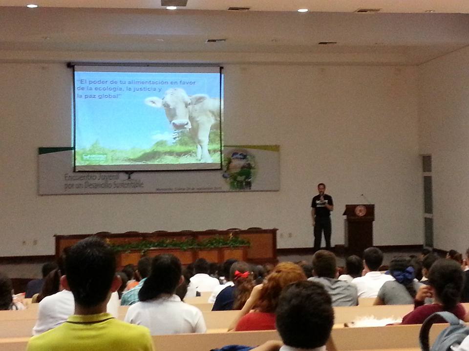 El licenciado Israel Arriola, director de AnimaNaturalis en México, participó con la conferencia magistral titulada “El poder de tu alimentación en favor de la ecología, la justicia y la paz global”, generando el interés de las más de 100 personas que asistieron al auditorio de la Facultad de Psicología.