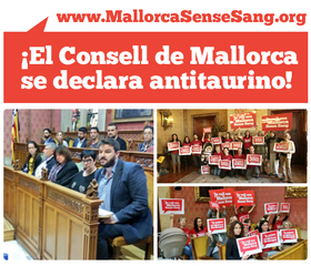 "¡Esto es histórico! Este es un paso más hacia la abolición total de la tauromaquia en Baleares. Nos queda ya muy poco para conseguir el objetivo final marcado por la campaña antitaurina de abolir la tauromaquia en Baleares",declara Guillermo Amengual, portavoz de la campaña Mallorca Sense Sang. "Mientras estamos a la espera de la votación en el Parlament de la Proposición No de Ley para seguir avanzando hacia la abolición de la tortura y muerte por diversión, seguimos aumentando los apoyos tanto en municipios declarados antitaurinos, como en firmas, más de 140.000. Desde la campaña Mallorca Sense Sang queremos agradecer a todos los políticos su implicación en esta campaña para abolir la tortura y muerte por diversión en Baleares" afirma Amengual.