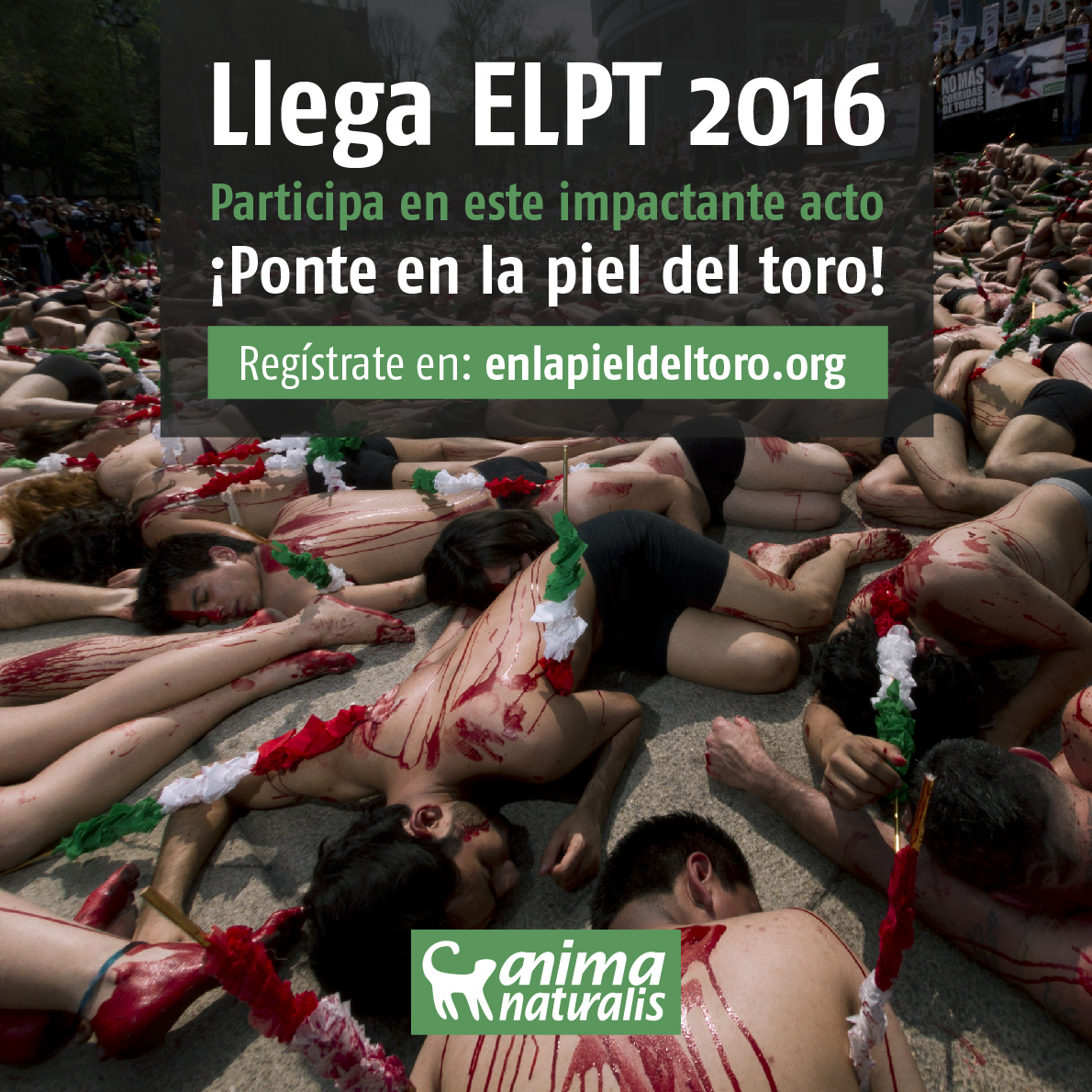 No cesaremos hasta la total abolición de la tauromaquia, por lo que te invitamos a ser parte de la octava edición –en México- del mediático acto “En la Piel del Toro”, que se llevará a cabo, simultáneamente, en la Ciudad de México, Morelia y Mérida. Esto, a propósito del 70° aniversario de la plaza de toros México.
