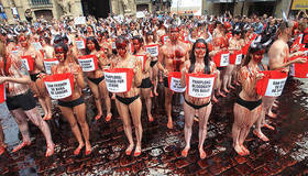 AnimaNaturalis reunimos más de 160 mil firmas en contra de las corridas de toros en Pamplona. Fueron entregadas al Ayuntamiento de Pamplona el pasado 26 de julio, días después de la ya tradicional protesta que junto con PETA; organizamos cdesde hace 14 años justo el día antes del chupinazo, que da comienzo a las fiestas de San Fermín.