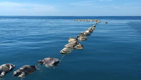 Los animales "habrían quedado atrapadas en redes de barcos atuneros", indicó Portección Civil mediante un mensaje de Twitter al tiempo que señaló que la Profepa investigaría la pesca incidental de la tortugas en coordinación con la Comisión Nacional de Pesca y Acuacultura (Conapesca) y Protección Civil de la entidad.
