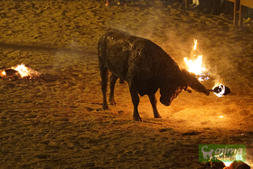 Y el fuego no solo está sobre su cabeza, sino también a su alrededor. Dentro del cercado prenden cuatro hogueras más en nombre de no sé qué santos. Es habitual que el toro las pisotee o embista con la cabeza, no por bravura, como le gusta pensar a un tauromaquio de esos, sino por ignorancia - es su primer contacto con el fuego - o por pura desesperación y angustia. Pero ellos siguen pensando que al toro le gusta jugar al corre corre que te pillo, y luego somos los animalistas quienes humanizamos a los animales…