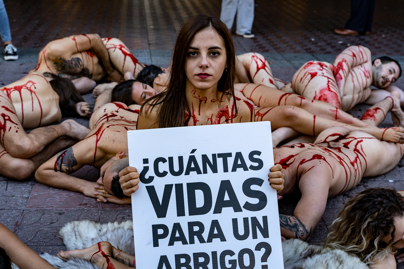 Es el primer año que participo en la performance que organiza AnimaNaturalis, conocida por todos como "SinPiel".