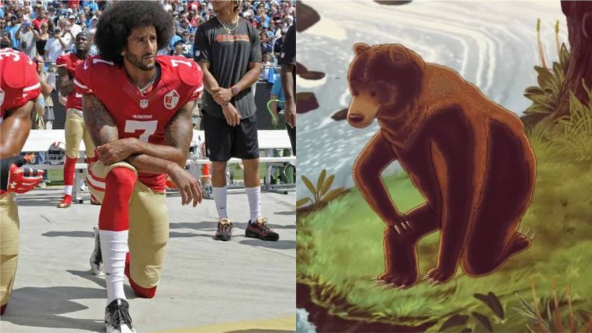 En el anuncio se pueden ver distintos animales escuchando el himno nacional de Estados Unidos, mientras colocan la rodilla en el suelo. Es un gesto que se ha popularizado en ese país para tomar posición ante los actos de violencia y abuso. Hace unos años, el ex quarterback de San Francisco 49ers, Colin Kaepernick fue despedido de la National Football League (NFL) por hincar su rodilla en el suelo mientras se tocaba el himno americano. Ese gesto lo realizó para llamar la atención acerca de la desproporcionada cantidad de afroamericanos víctimas de la violencia policial y otras agresiones de índole racial.