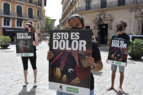 Me sentía muy emocionada y a la expectativa de cómo se desarrollaría esta actividad, pero lo que más tranquilidad me dio de participar fue la excelente información y descripción de la misma por parte de Arantxa Laguna, coordinadora de AnimaNaturalis en Mallorca. Ya cuando me dirigía con un poco de retraso al punto de encuentro, me emocioné al ver a más personas con el mismo propósito que yo: protestar de manera contundente contra esta actividad tan cruel.