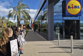 Este sábado, coincidiendo con el día internacional de los derechos de los animales, protestamos en Elche y Barcelona simultáneamente con acciones frente a Lidl. Se trata de una de las pocas cadenas de supermercados que aún no ofrece los requisitos mínimos de bienestar animal en sus explotaciones avícolas.