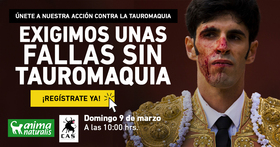 Únete a la acción antitaurina de AnimaNaturalis y CAS International. Con una protesta impactante, mostraremos que la ciudadanía valenciana se avergüenza de que las fallas queden empañadas, cada año, por la feria taurina.