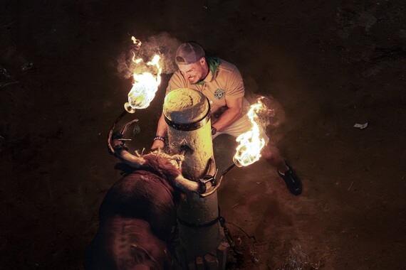 La forma más cruel de festejo es cuando se colocan bolas impregnadas con una sustancia inflamable en sus cuernos y se les enciende para verlos correr desesperados.