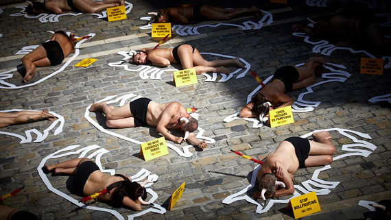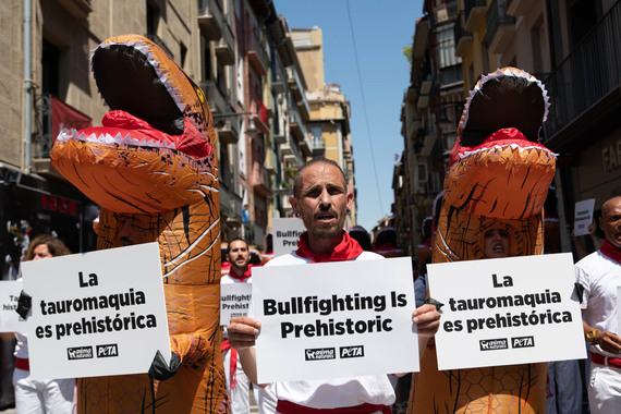 En Pamplona, decenas de toros son brutalmente masacrados en público. Durante cada día de las fiestas de Sanfermín, estos animales son apuñalados en cruentas corridas de toros. Todos los toros de Sanfermín mueren en una plaza, de forma lenta y agónica, mientras algunos pocos disfrutan y aplauden este espectáculo de dolor y tortura.