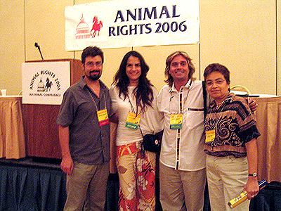 Foto: Francisco Vásquez, Leonora Esquivel, Alex Pacheco (co-fundador de PETA) y Maru Vigo.