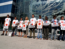 Los activistas se congregaron frente a Embajadas y Consulados de sus respectivos países para entregar una carta al Embajador solicitando el cese de la matanza.