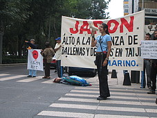 El evento fue parte de una protesta internacional realizada en más de 32 Embajadas de Japón y apoyada por más de 60 organizaciones defensoras de los animales.