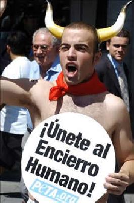 Ante la proximidad de las fiestas, que se desarrollarán entre el 6 y el 14 de julio, los activistas, pertenecientes a la organización internacional PETA (Personas por el Tratamiento Ético de los Animales) y ANimaNaturalis han aprovechado para llamar la atención sobre la crueldad con estos animales.