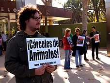 Con carteles que ponían. "Ayúdame, no visites el zoo" y "zoo:cadena perpetua", "Los animales quieren ser libres", los activistas pretendían mostrar a los visitantes que detrás de lo que parece un lugar de conservación de especies se esconde el sufrimiento de animales que pasan toda su vida en jaulas.