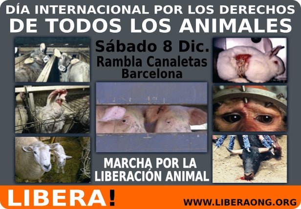 AnimaNaturalis también estará presente en la manifestación que convoca la organización Libera! a las 12h. en el centro de la ciudad de Barcelona, para conmemorar este día.