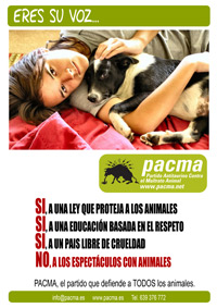 El Partido Antitaurino contra el Maltrato Animal (PACMA), que se convirtió ayer en la séptima fuerza política en la circunscripción de Madrid, agradeció hoy el apoyo recibido y exclamó que "han ganado los animales".