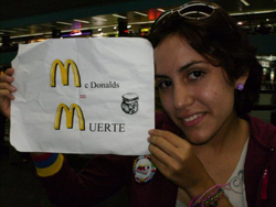 El día 16 la activista Andreína Fernández entró en el McDonald´s de Galerías Mall y al solicitar una "cajita Feliz" cayó desmayada. Inmediatamente fue atendida por el personal de local. Justo en ese momento de auxilio ella saca un pequeño cartel de su ropa que dice Mcdonald´s = Muerte.