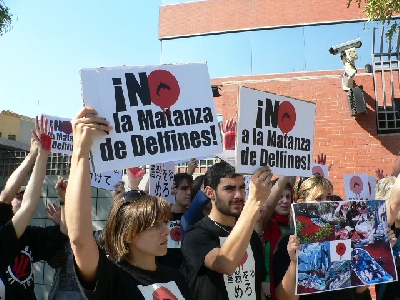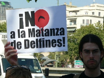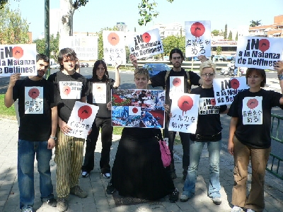 Llevaban carteles en castellano y japonés con el lema “No a la matanza de delfines” y fotografías explícitas para mostrar el rechazo a la matanza que tiene lugar cada año en este país. También se entregaron cientos de folletos a los transeúntes que acogieron la información con gran interés y desconcierto ya que no es muy conocido este asunto.