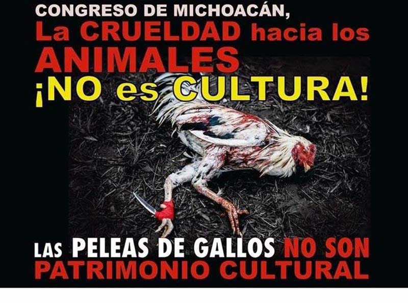 Según el grupo de “galleros”, su petición se justifica pues las peleas de gallos han sido declaradas Patrimonio Cultural por algunos ayuntamientos y representan una fuente de empleo e ingresos para varios sectores. Sin embargo, este tipo de espectáculos, al igual que las corridas de toros y cualquier otro donde se atente contra la vida de un animal, denigran nuestra dignidad y nuestra cultura, pues exaltan la violencia y refuerzan la idea de que el humano puede abusar sin consecuencias de otros seres. Hay muchas actividades redituables que pueden desarrollarse sin necesidad de maltratar y asesinar a un ser sintiente.