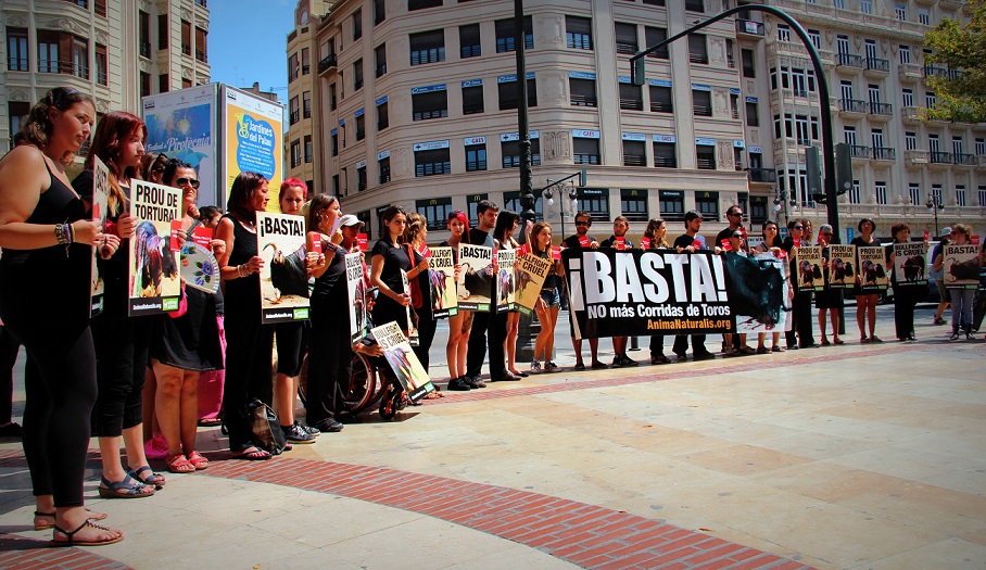 “Protestamos por la Feria de Julio donde casi un centenar de toros, vaquillas y becerros serán torturados y asesinados, pero también perseguimos la abolición de la tauromaquia. Cada vez somos más los que queremos que esta lacra desaparezca en la Comunidad Valenciana. No queremos se sigan derrochando millones de euros del Erario Público en financiar la tortura de los seres, cuando nuestra comunidad es la más endeudada de España.”- declara Carmen Moll, coordinadora de AnimaNaturalis en la Comunidad Valenciana - “Los animales, en este caso los toros, los becerros y las vaquillas, deben ser respetados en su derecho a la vida y a no ser torturados y asesinados impunemente, para el disfrute sin sentido de una minoría taurina”-añdió Moll.