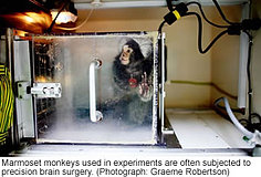 (Los macacos utilizados para experimentación son sometidos a cirugía cerebral de alta precisión. Foto: Graeme Robertson).